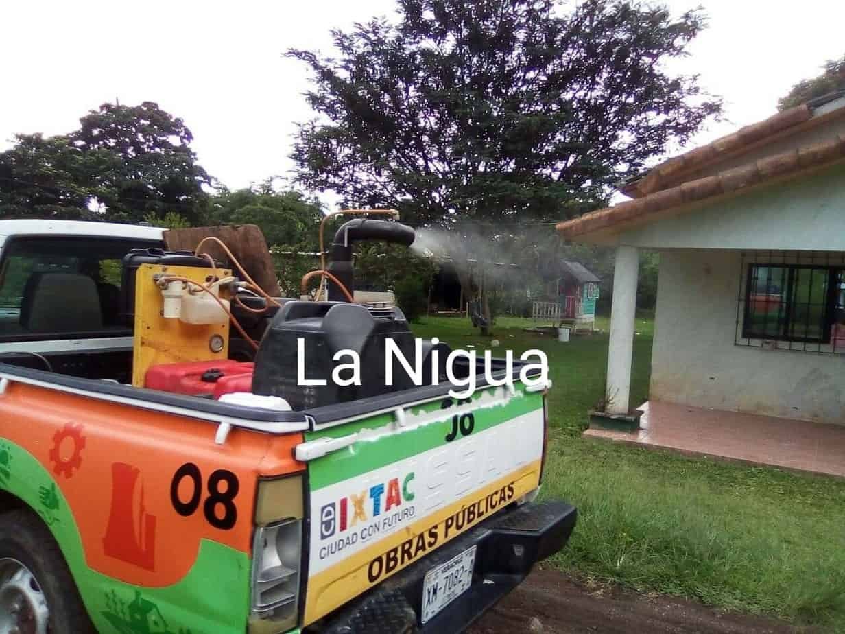 Ixtaczoquitlán, Ver. Para frenar la proliferación del mosco transmisor de enfermedades como el dengue, zika y chikungunya, el Ayuntamiento de Ixtaczoquitlán con apoyo del personal de vectores de la jurisdicción sanitaria 7, continúa fumigando colonias y comunidades del municipio.
