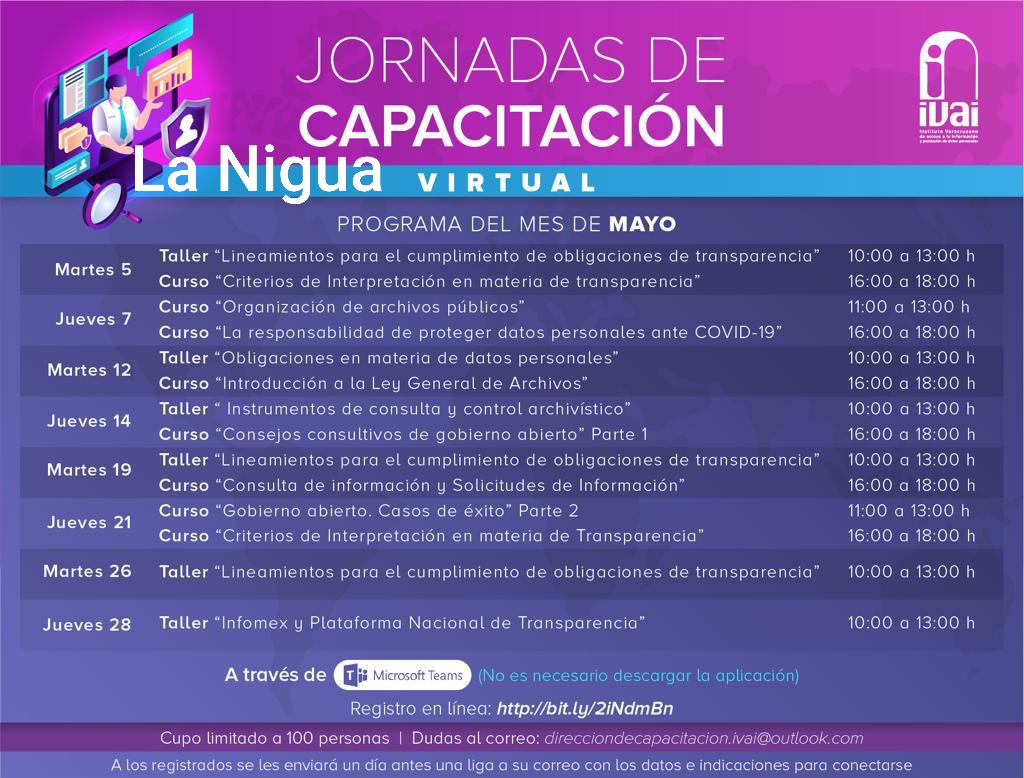 Las sesiones a distancia comenzaron el pasado martes 5 de mayo y concluyen el jueves 28 de este mismo mes, tratando temas relacionados con el cumplimiento de las obligaciones de transparencia, archivos públicos, datos personales, gobierno abierto y solicitudes de información.