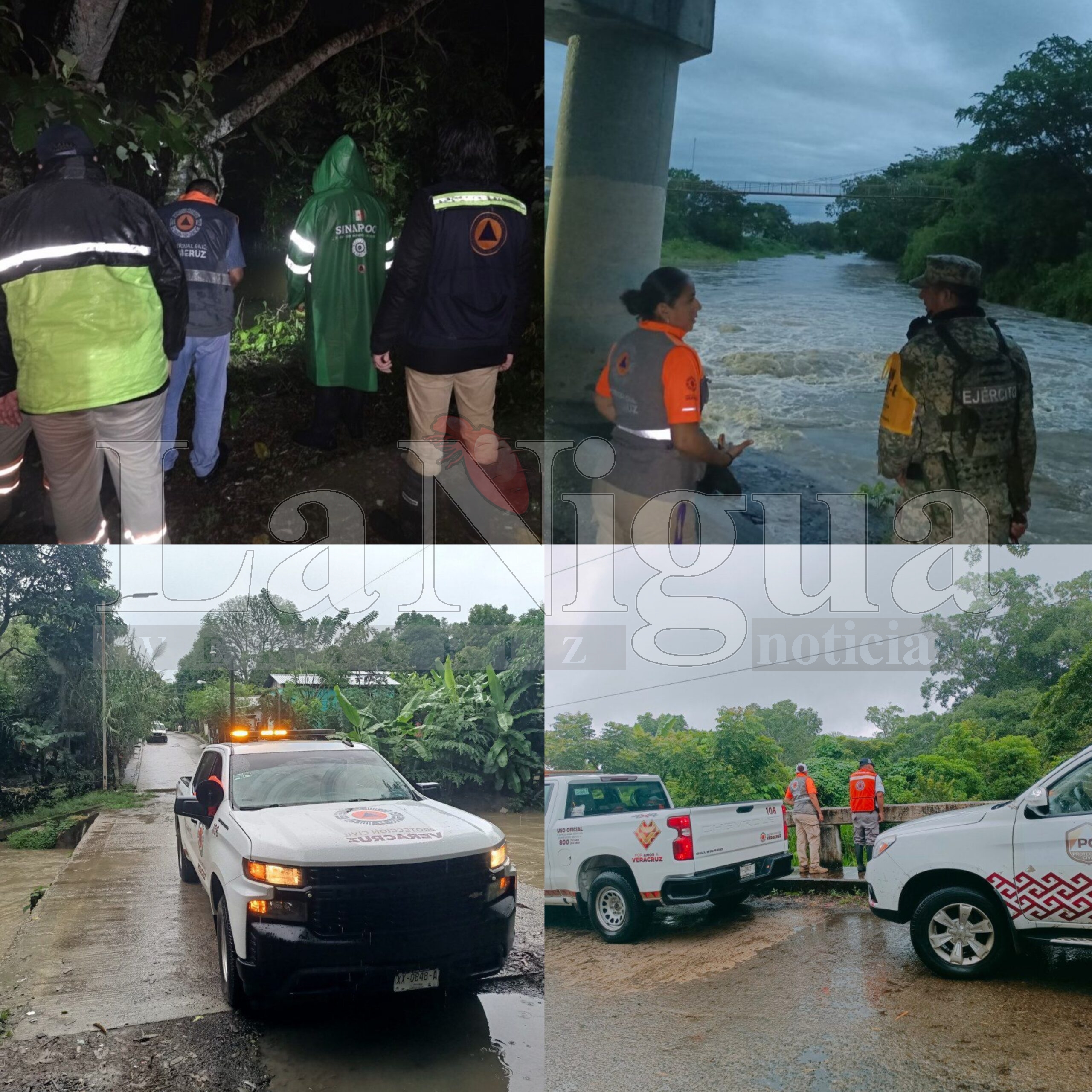 En el río Tecolutla se mantiene la vigilancia permanente; aunque no ha causado afectaciones directas a viviendas, se reportan anegamientos en puntos de los municipios de Tecolutla y Gutiérrez Zamora.