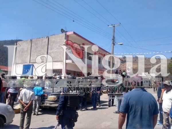 En el lugar se encuentran elementos de policía municipal, protección civil, policía ministerial y policía eatatal, así como personal de política regional, los cuales negocian con pobladores, para poder trasladar al inculpado.