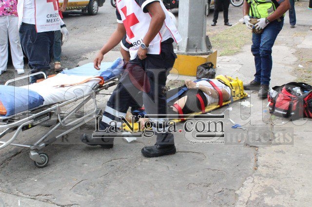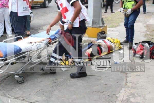 Así y por accidente, la señora golpeó al motociclista y su pareja, quienes derraparon varios metros hacia el frente, en tanto la joven Andrea L. quedó en un área verde con algunos golpes y raspones.