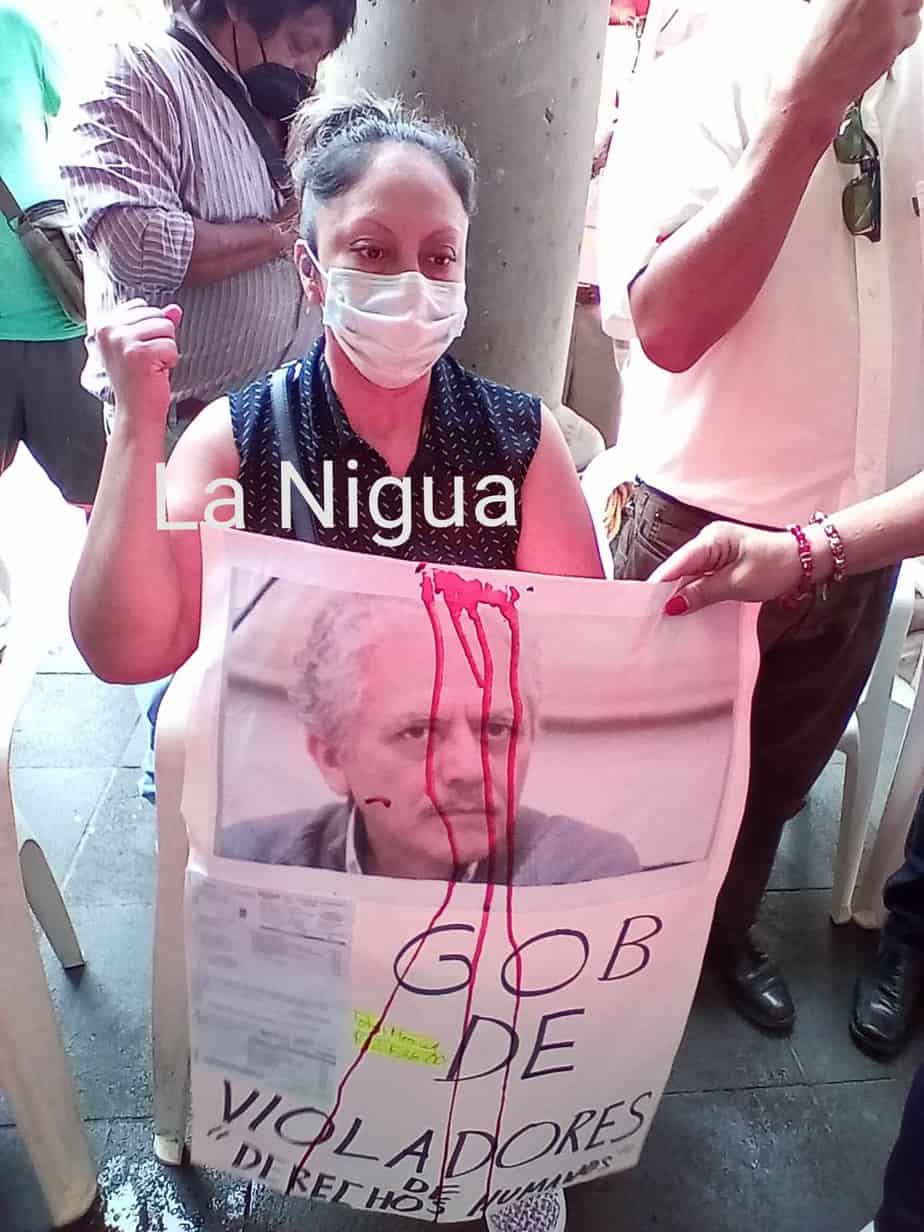 Su sangre que salió del brazo izquierdo del líder, cayó en la foto del presidente municipal de Xalapa Pedro Hipólito Rodríguez Herrero, los manifestantes no se van a retirar hasta que se les dé una respuesta favorable.
