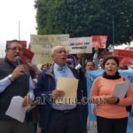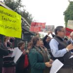 Con las consignas “Sí a la familia”, “fuera Robles”, “No nos representas”, los manifestantes le reclaman a la diputada Mónica Robles Barajas que haya promovido el matrimonio igualitario.