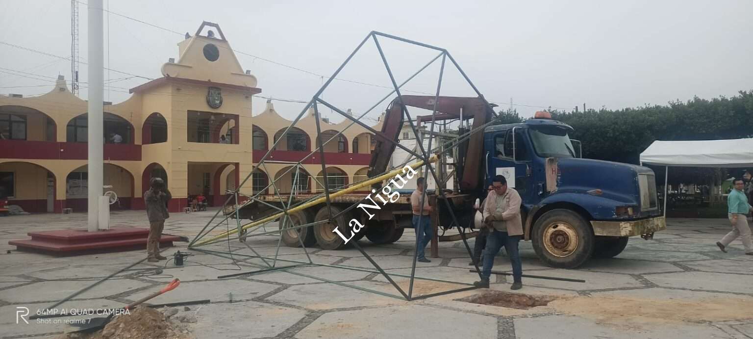 Autoridades municipales instalaran un pino navideño de más de 8 metros de altura en el parque Lic. Benito Juárez García con motivo de las fiestas decembrinas.