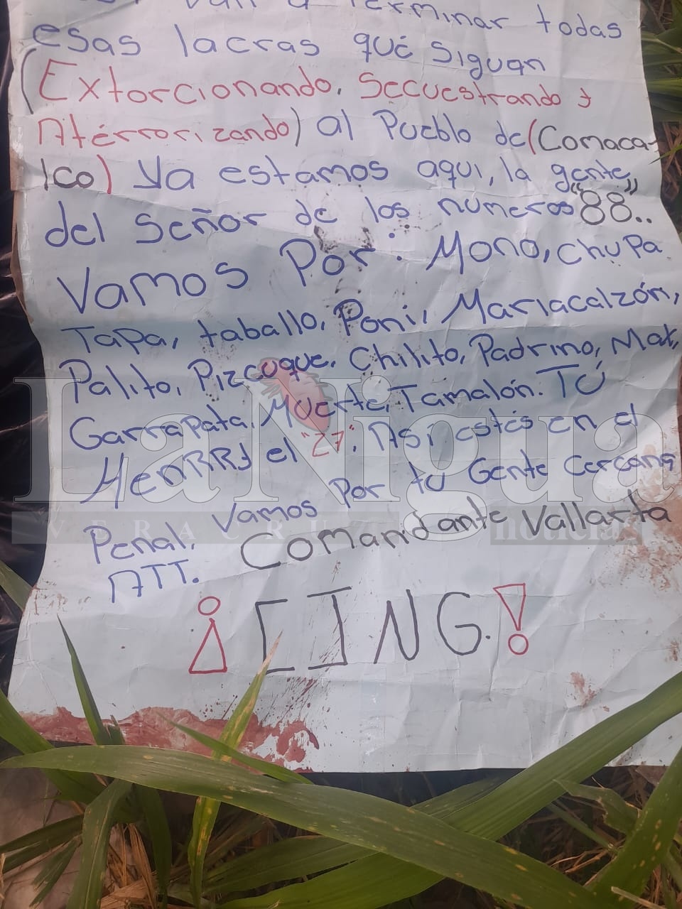Trasciende que la víctima respondía al nombre de Gustavo “N”, y de acuerdo a la cartulina, se dedicaba al secuestro y la extorsión, además en el mensaje plasmado mencionan a otras personas por estos mismos delitos y que correrán con la misma suerte.