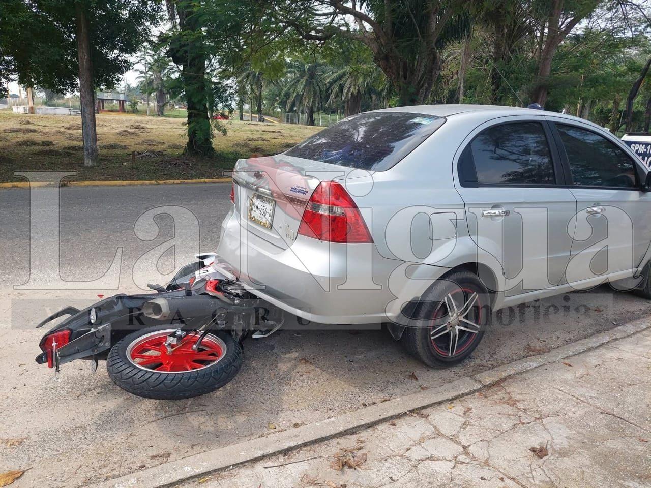 Las Choapas, Ver.— La mañana de este viernes 23 de enero, dos jóvenes que viajaban a bordo de una motocicleta protagonizaron un accidente sobre el bulevar Antonio M. Quirazco, luego de impactarse contra un automóvil que se encontraba estacionado.