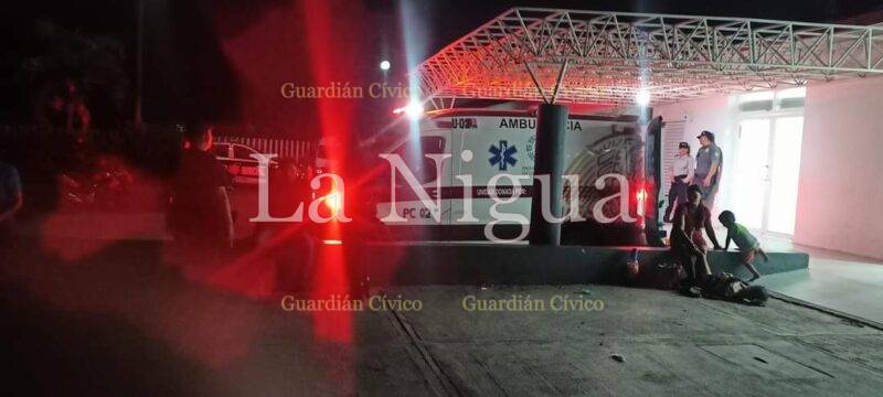 Alrededor de las 19:30 horas de este miércoles 18 de octubre, dos masculinos que viajaban a bordo de una motocicleta sufrieron un accidente en la calle Aviación del mismo nombre a la altura de la tienda de abarrotes Juniors.