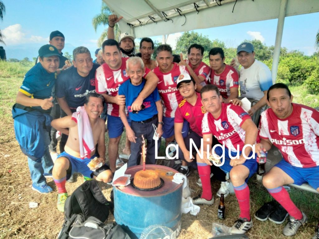 Después del juego, Anuar Hazouri y el resto del equipo del Iberia festejó a Bence con un pastel y además de regalos por sus 81 años, muchos de ellos dentro del fútbol.
