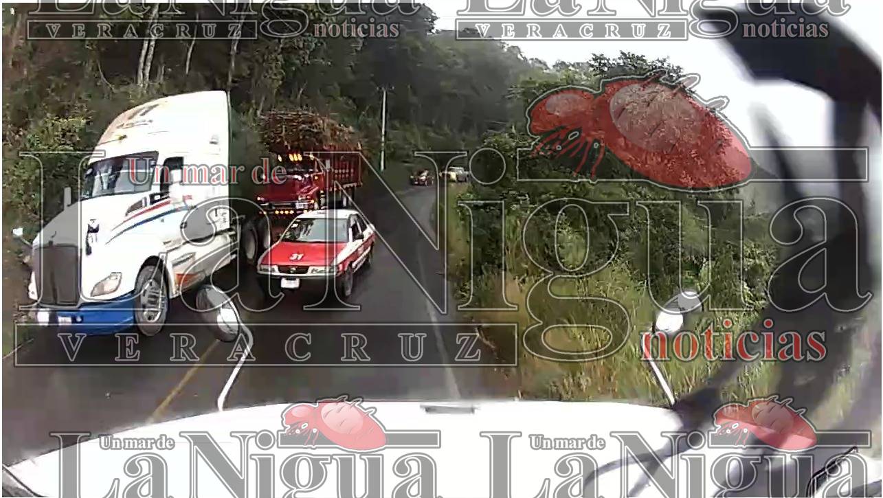 Como informamos oportunamente, la mañana de lunes un taxi trató imprudentemente de rebasar en curva en el cerro del Chiquihuite, cuando circulaba en el carril contrario la unidad pesada de pollo, cuyo conductor trató de evadir para evitar que el auto de alquiler se estrellara con el carro pesado y los ocupantes salieran heridos.