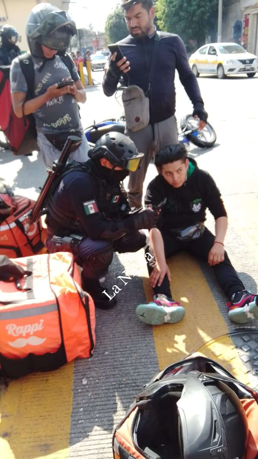 Córdoba, Ver.- Un motociclista empleado de un negocio de reparto de comida, resultó lesionado teniendo que ser atendido por paramédicos de la Cruz Roja luego de que la unidad en la cual se desplazaba, fue impactada por una camioneta cuando uno de los conductores aparentemente no respetó la luz roja del semáforo en el cruce del boulevard de la avenida 11 y calle 9 en la colonia Centro.