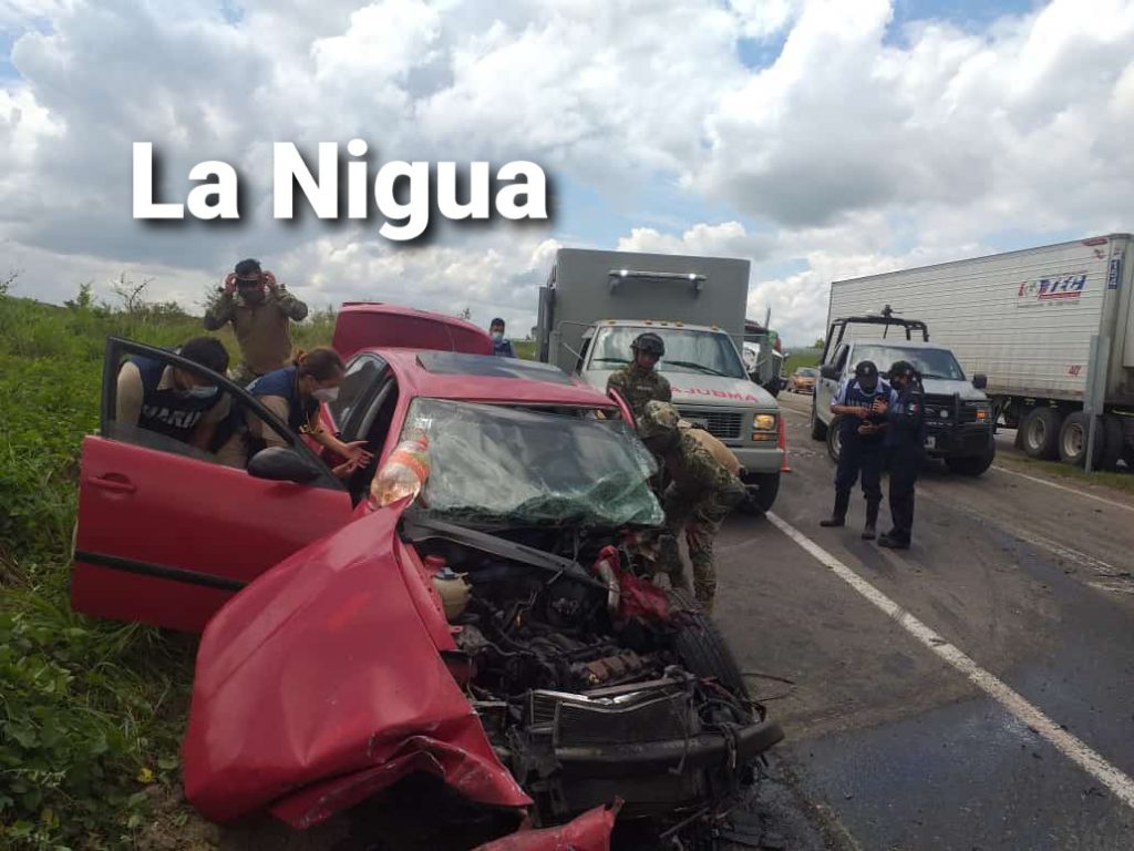 El accidente, ocurrió en la autopista Tihuatlán a Tuxpan en el tramo Ávila Camacho a Cañada Rica, quedando destrozado el automóvil y a punto de perder la vida sus ocupantes.