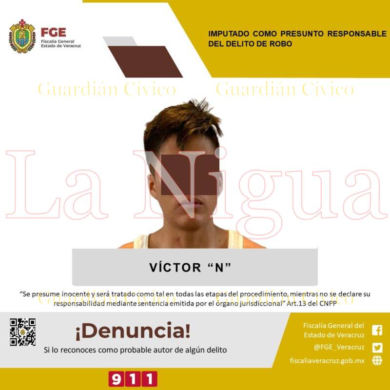 Córdoba, Ver; a 9 agosto del 2023.- La Fiscalía Regional Córdoba realizó imputación en contra de Víctor “N” como presunto responsable del delito de robo cometido en agravio de la víctima con identidad resguardada, hechos ocurridos el 6 de agosto del 2023 en la colonia Centro.