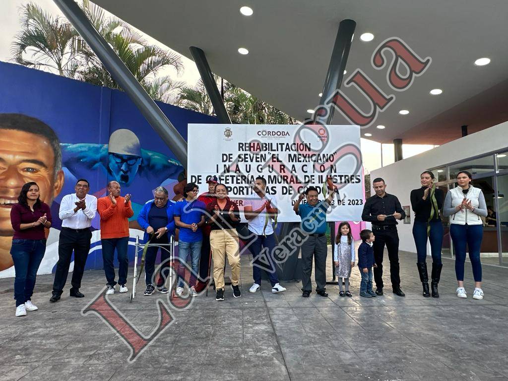 Córdoba, Ver.- Con la intención de rendir un homenaje a deportistas destacados de Córdoba, el Presidente Juan Martínez Flores inauguró esta tarde el mural “Ilustres Deportistas de Córdoba”, así como la rehabilitación de las canchas de futbol seven y la cafetería con sanitarios.