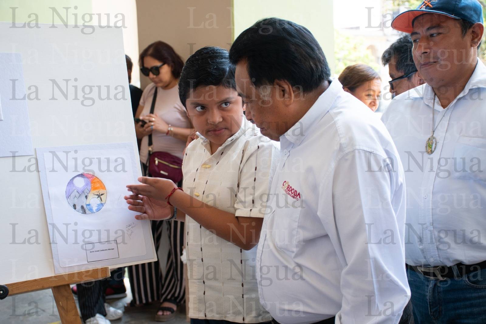 Córdoba, Ver., (17 de mayo del 2023). – Autoridades municipales encabezadas por el presidente municipal, Juan Martínez Flores y la síndica única, Vania López González, inauguraron la primera exposición de dibujos sobre el cuidado del medio ambiente, donde participaron 22 niñas y niños.