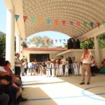 Como muestra de agradecimiento y estrenando la cancha de usos múltiples, y bajo la sombra que les ofrece el nuevo domo, los pequeños presentaron bailables a las autoridades y padres de familia.