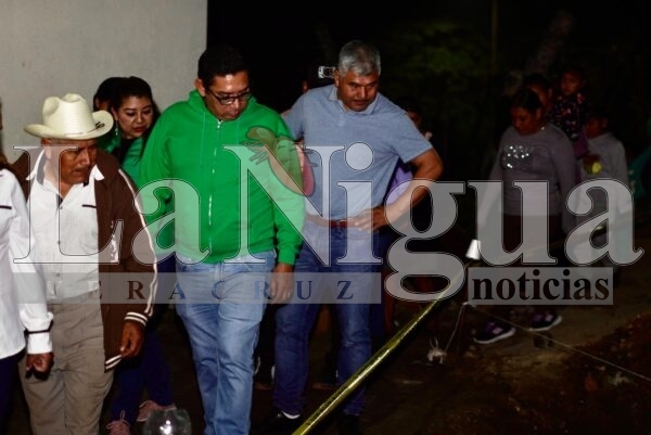 Chocamán, Ver. — La noche del miércoles 13 de noviembre, el alcalde de Chocamán, Ernesto Ruiz García, acompañado de ediles, vecinos y el agente municipal de Calaquioco, llevó a cabo la inauguración oficial de la electrificación en la parte alta de esta localidad.