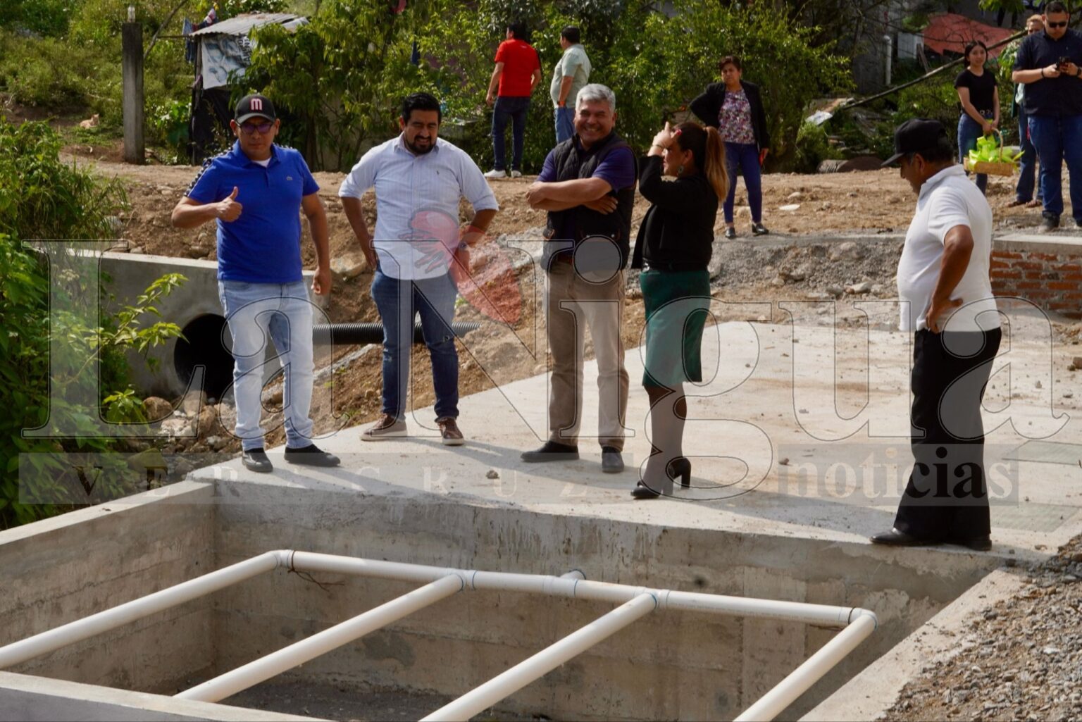 Chocamán, Ver.- Este jueves 6 de marzo, el alcalde Ernesto Ruiz García, acompañado de ediles y vecinos de la colonia “El Xuchil” o “La Estación”, inauguró una nueva obra de infraestructura sanitaria en la cabecera municipal.