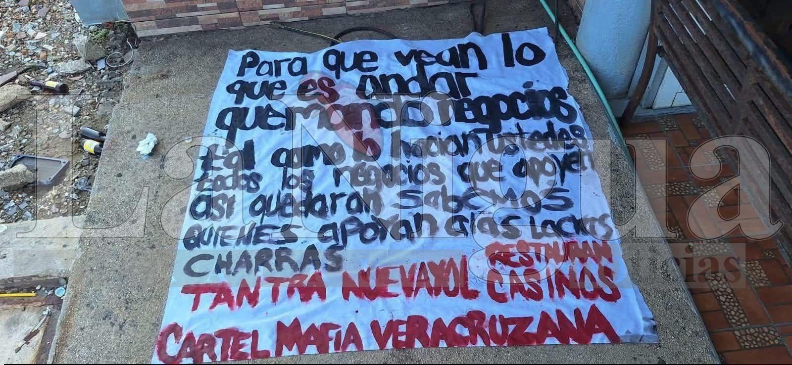 A pesar de que el funcionario municipal, no reconoció que el siniestro fue provocado, minutos después se confirmó la presencia de la lona, que fue retirada por los trabajadores, donde el grupo delictivo Mafia Veracruzana, se atribuye dicho ataque.