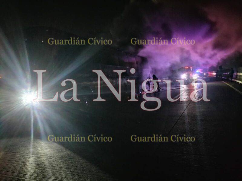 Autoridades indicaron que el siniestro, derivó de una falla en el motor lo que provocó que de inmediato se comenzara a incendiar, teniendo el operador que detenerse cuando circulaba procedente de Coatzacoalcos con rumbo a la Ciudad de México.