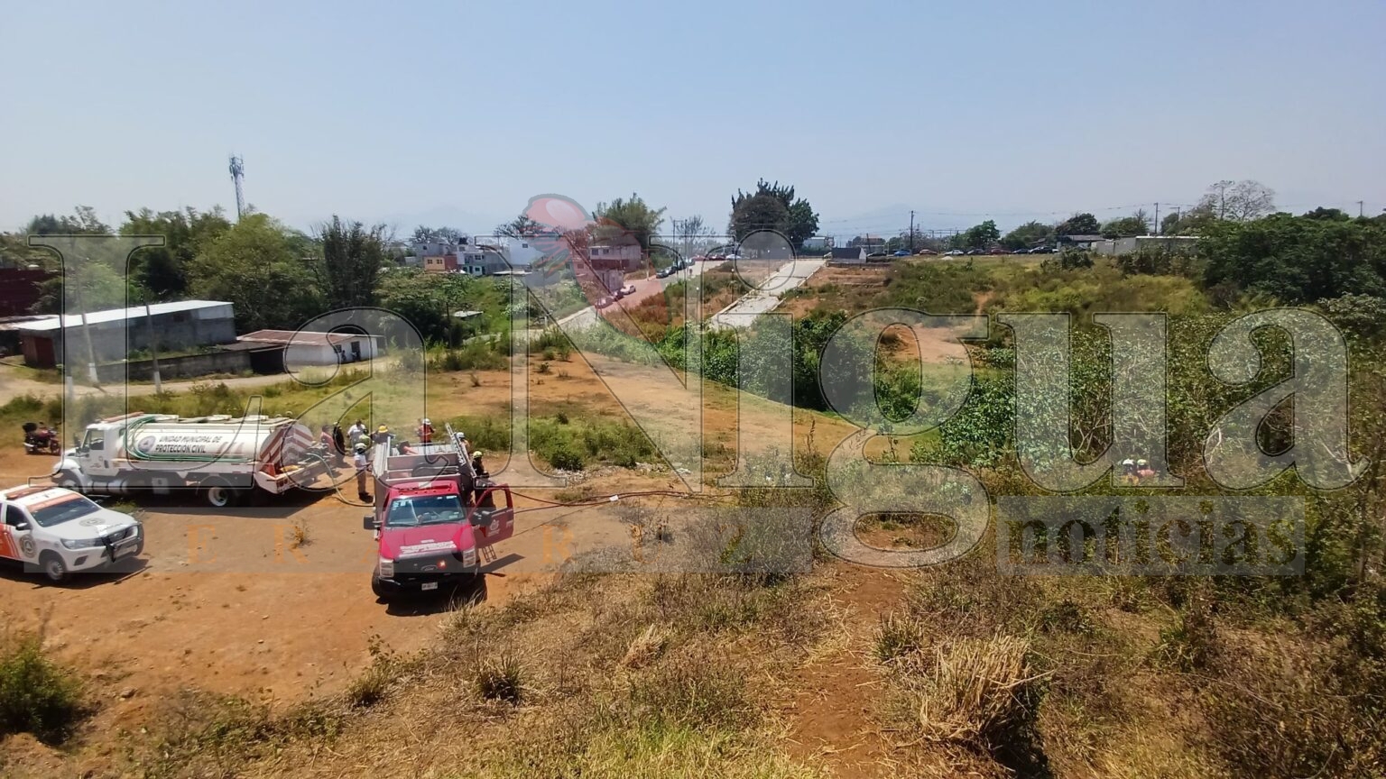 Córdoba, Ver.- La tarde de este viernes, un incendio de pastizal se registró en un amplio solar ubicado en la colonia Del Ángel, frente al campo Huilango.