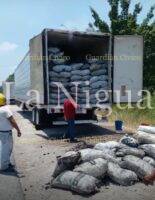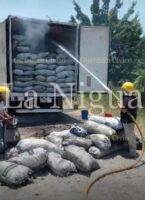 Cuitláhuac, Ver.- Un tráiler cargado con carbón comenzó a incendiarse cuando se desplazaba sobre la carretera federal Cuitláhuac-La Tinaja.