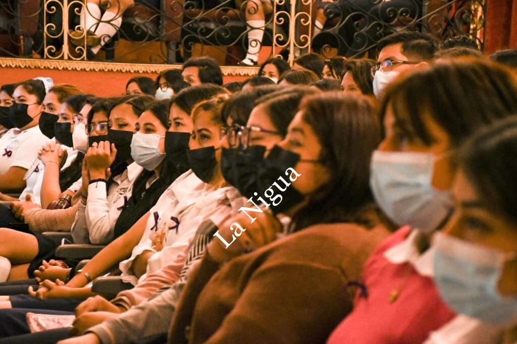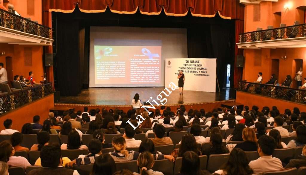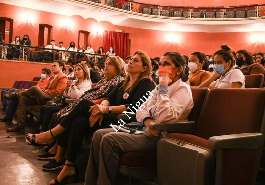 La conferencia “Tipos y Modalidades de Violencia” realizada en el teatro Pedro Díaz estuvo dirigido a estudiantes del Telebachillerato Agustín Millán, así como a funcionarios municipales, estando presentes los Regidores Daniel Vázquez Hernández, Erick Alberto Gasca Morales y María del Carmen Aguilar Mendoza; así como directores de área y la titular del Instituto Municipal de las Mujeres en Córdoba, María Teresa Toriz Javier.