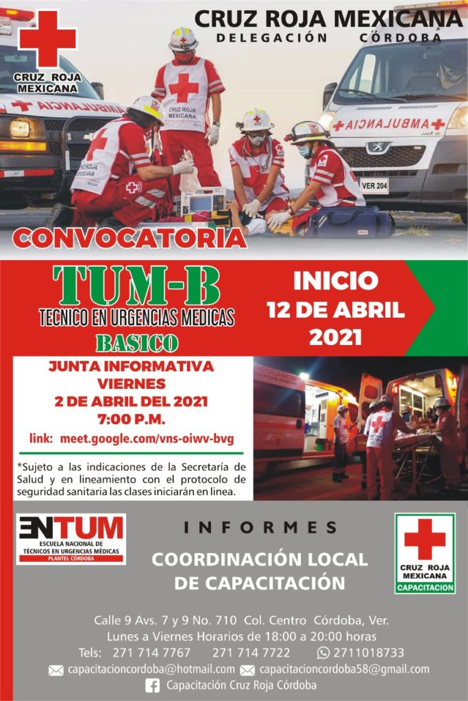 Córdoba, Ver. La apertura del nuevo curso de Técnico en Urgencias Médicas (TUM), nivel básico conocido coloquialmente como paramédico donde los jóvenes tienen la oportunidad de aprender una profesión ya que al aprobar tu examen finalizan su curso posteriormente pueden realizar el examen de certificación Y ser respaldados por la secretaría de educación pública.