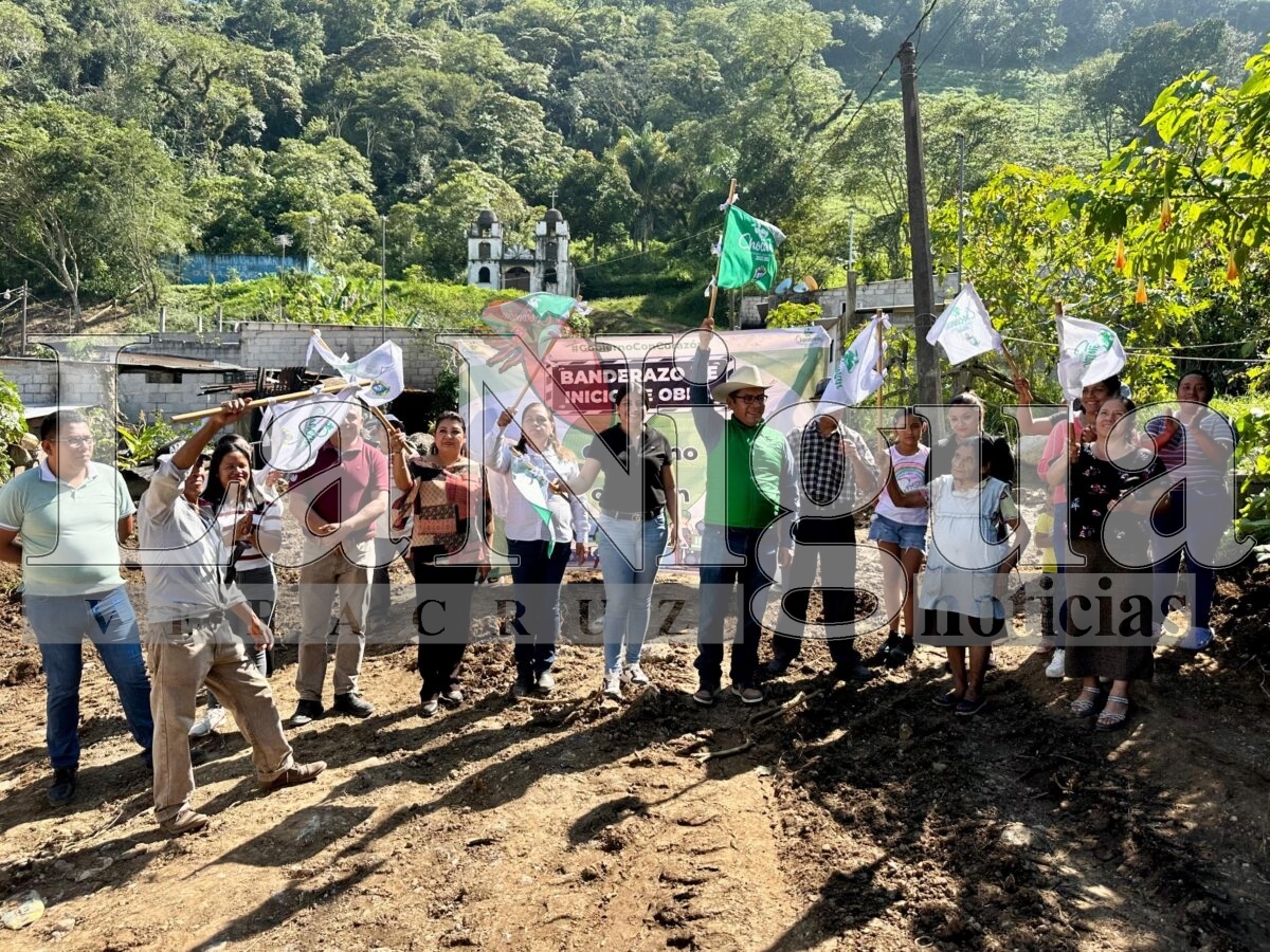 Chocamán, Veracruz.– Este martes 12 de noviembre, el alcalde de Chocamán, Ernesto Ruiz García, junto con la presidenta del DIF Municipal, Enhacore Escamilla Pimentel, ediles y vecinos de la colonia Antonio Luna, realizaron el banderazo de inicio de obra en la prolongación de la calle Francisco I. Madero.
