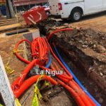 Fortín, Ver., a 27 de mayo de 2020.- A menos de mes y medio de iniciados los trabajos de la 2da etapa de rehabilitación de la Calle 1 del centro de Fortín, esta registra un importante avance en los trabajos de construcción de la conversión de la red eléctrica aérea a subterránea, para lo que después de la colocación de ductos de baja y media tensión, colocación de registros y relleno en cepas, se ha dado inicio al suministro y colocación del cable de media y baja tensión en ambas aceras de la obra.