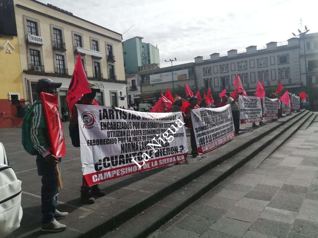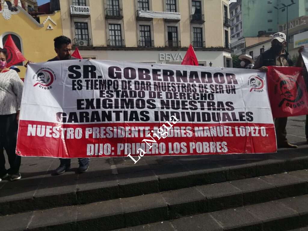 Xalapa, Ver.- Decenas de integrantes de la Central Independiente de Obreros y Campesinos (CIOAC), se encuentran manifestandose en la Plaza Lerdo, ya que llevan tres años que tienen en posesión dos mil hectáreas de terreno ubicadas en ” La Sierra Alta” del municipio de Coatepec, ellos son 150 familias Campesinas que necesitan tierras para trabajar, por lo tanto piden a las autoridades correspondientes que intervengan, así también señalan a la juez de control de distrito judicial de Coatepec, Lic. Adriana Arias Ferreira de favorecer a tres cuidados que se dicen ser dueños de estos terrenos, uno de ellos es el artista, Aro Sebastián Brickman de la sería ” El señor de los cielos” así lo manifestó, el profesor, Ramón González