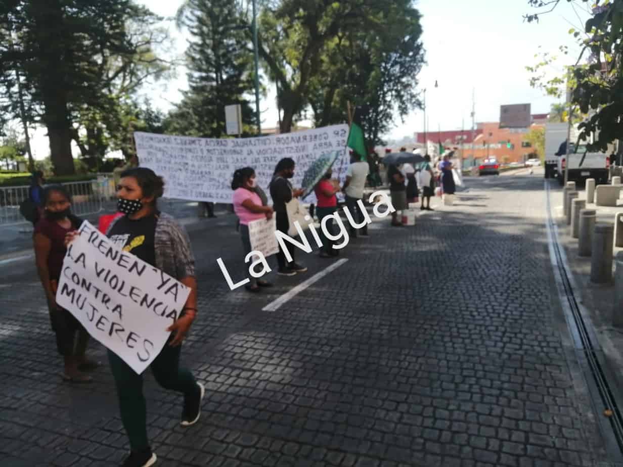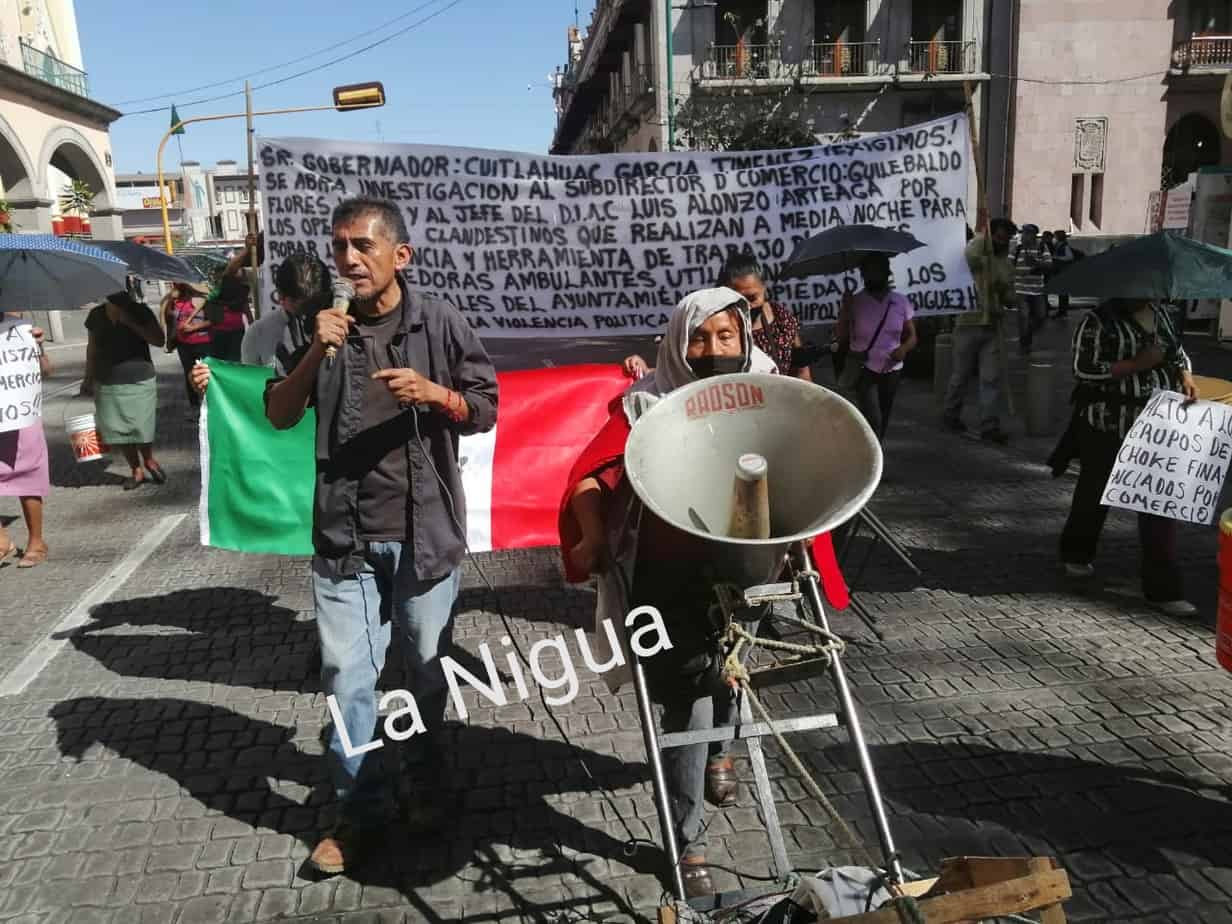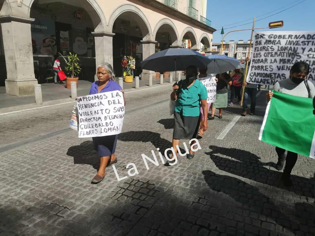 Alto la represión del presidente municipal de Xalapa Pedro Hipólito Rodríguez Herrero, hacia las mujeres pobres, tenemos un presidente racista, misógino y no quiere atender a nadie, nosotros desde que llegó a la, presidencia municipal le hemos solicitado una audiencia y se nos a negado.