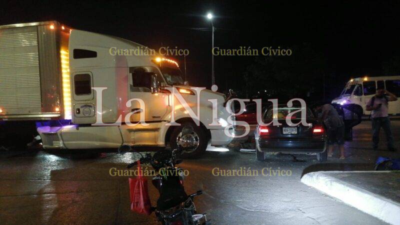 Cd Madero, Tamaulipas.-Cuatro integrantes de una familia, entre ellos dos menores de entre 7 y 10 años de edad, resultaron lesionados al ser impactado el vehículo en el que viajaban por un vehículo de carga.