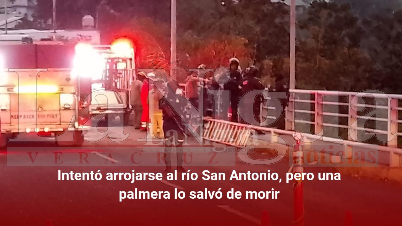 Córdoba, Ver.— Un hombre que presuntamente intentó quitarse la vida arrojándose desde el puente de la avenida 6 terminó sobreviviendo de manera inesperada: quedó atorado entre las ramas de una palmera a orillas del río San Antonio, lo que permitió a los cuerpos de emergencia rescatarlo con vida.