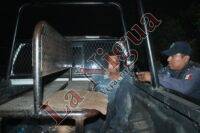 Tantoyuca, Ver. – Elementos de la secretaria de seguridad publica municipal lograron rescatar con vida a una mujer y dos infantes, estos estaban siendo salvajemente agredidos por el jefe de familia, quien intentó dar la estocada final a su familia matándolas con un hacha, gracias a los vecinos que reportaron al 911 los violentos hechos, la policía pudo llegar a tiempo y detener al ebrio sujeto.