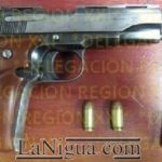 No obstante, intentaron darse a la fuga, pero fueron detenidos al detectarse que uno de ellos portaba un arma de fuego corta, marca Llama Especial, matrícula 29233, calibre 380, color plata con cacha de plástico, y un cargador con dos cartuchos.