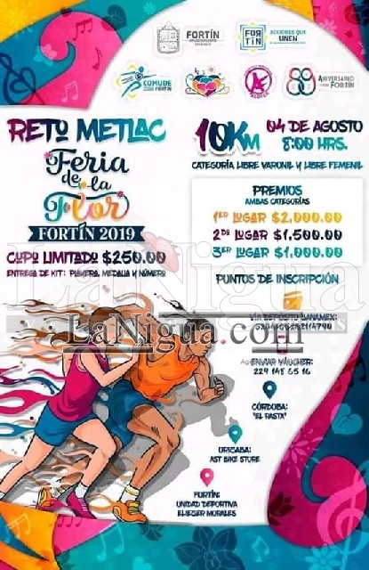 Fortin.-20/06/19.- El Ayuntamiento de Fortín a través de la Coordinación Municipal del Deporte Fortín hace una invitación a participar en la carrera “Reto Metlac” en su edición conmemorativa de la “Feria de la Flor 2019” 10k.