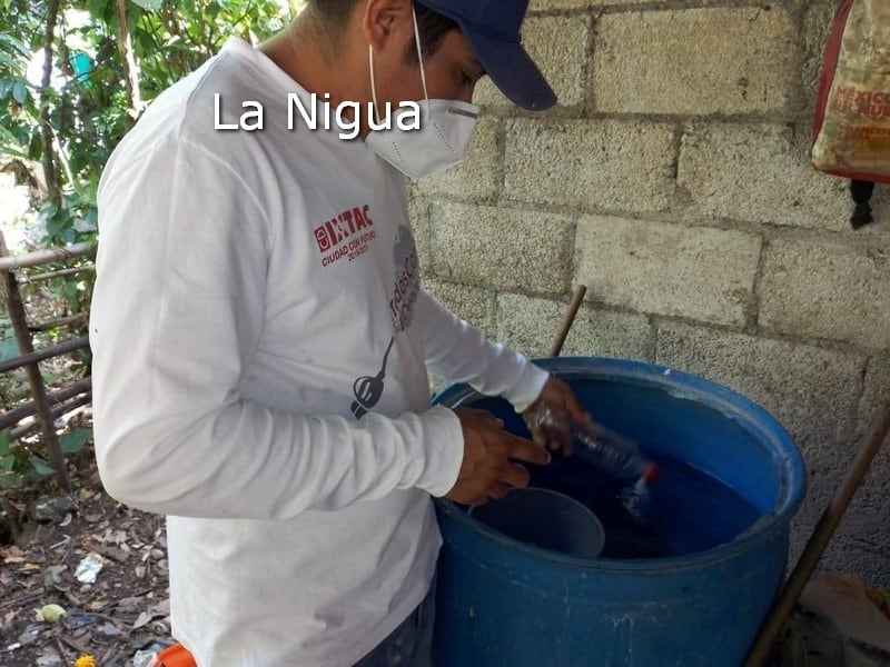 Las brigadas municipales capacitadas por personal de la Jurisdicción Sanitaria 7, visitan los hogares para aplicar abate granulado en los tanques de almacenamiento de agua y con ello eliminar las larvas.