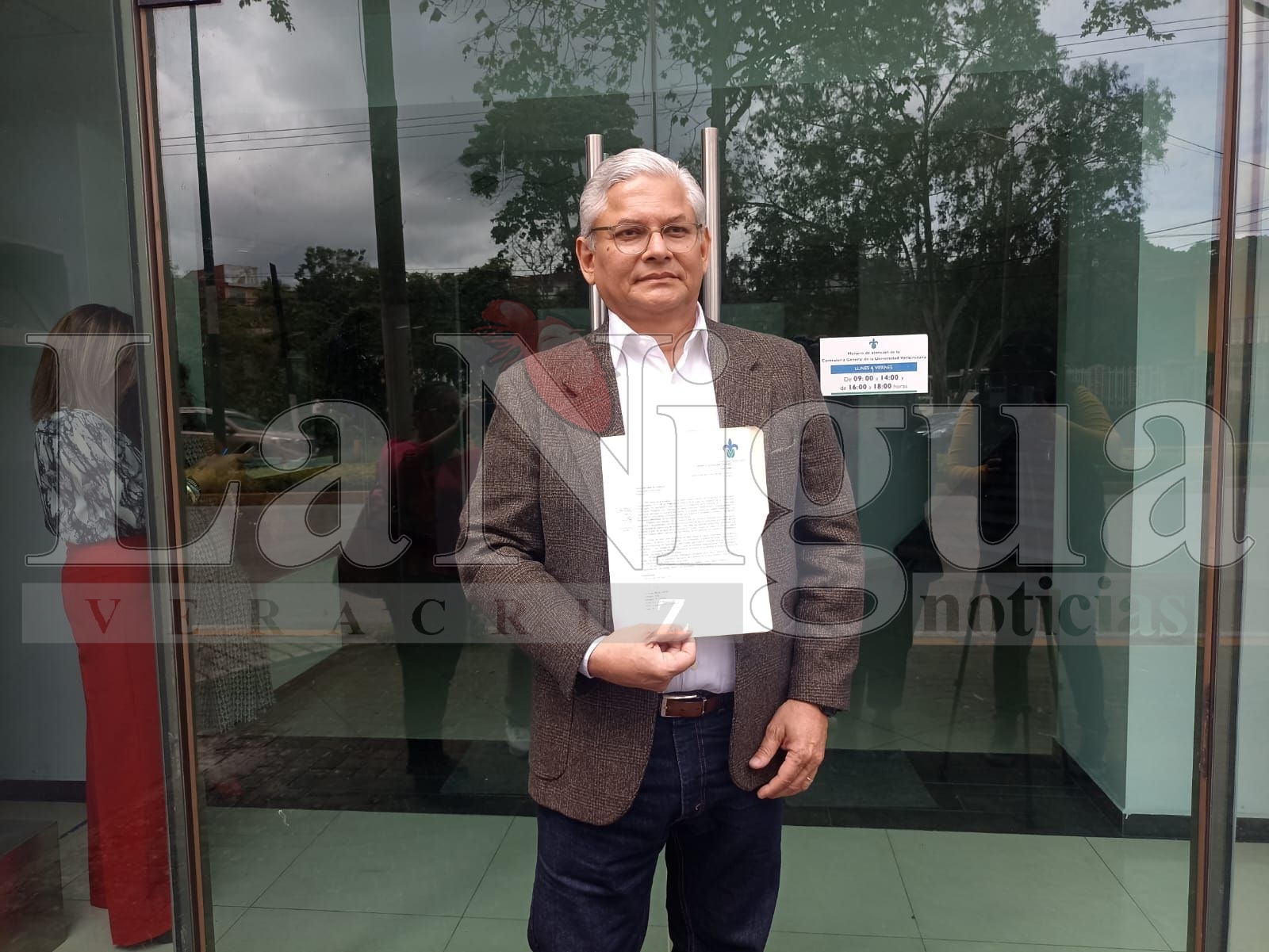 Xalapa, Ver.— El doctor Jorge Manzo Denes, investigador y académico de la Universidad Veracruzana (UV), acudió este viernes a las oficinas de la Junta de Gobierno de esta casa de estudios, ubicadas en la avenida Rafael Murillo Vidal, con la finalidad de entregar un escrito mediante el cual manifiesta su interés por contender a la Rectoría de la institución. Sin embargo, se encontró con la sorpresiva inactividad administrativa en dichas oficinas.