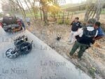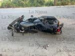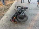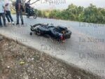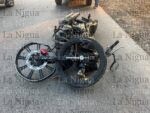 La motocicleta en la que se desplazaban de la marca Italika, RC150, de color gris, terminó completamente destrozada de la parte frontal.