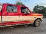 La camioneta involucrada de la marca Ford, F350, de color roja con blanca, terminó con daños materiales en su carrocería sobre su costado derecho.