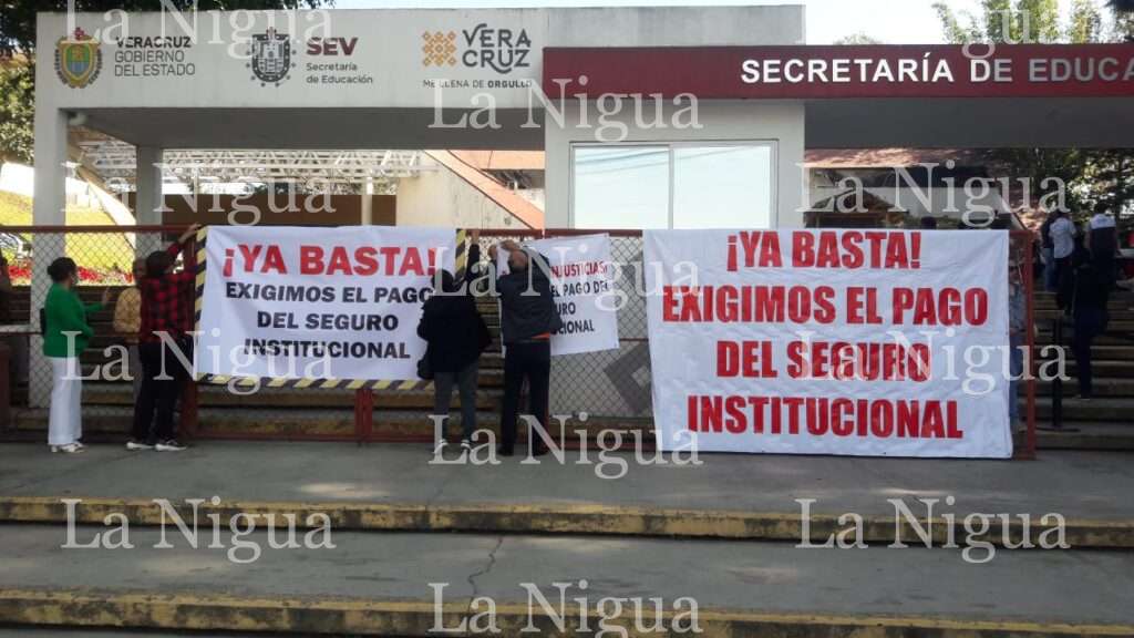 Xalapa, Ver.- Un pequeño grupo de jubilados y pensionados, se manifestaron en la entrada principal de las oficinas de la Secretaría de Educación de Veracruz ( SEV ), dónde colocaron varias lonas grandes, para exigir el pago del ” seguro institucional “, sobre todo de personas fallecidas.