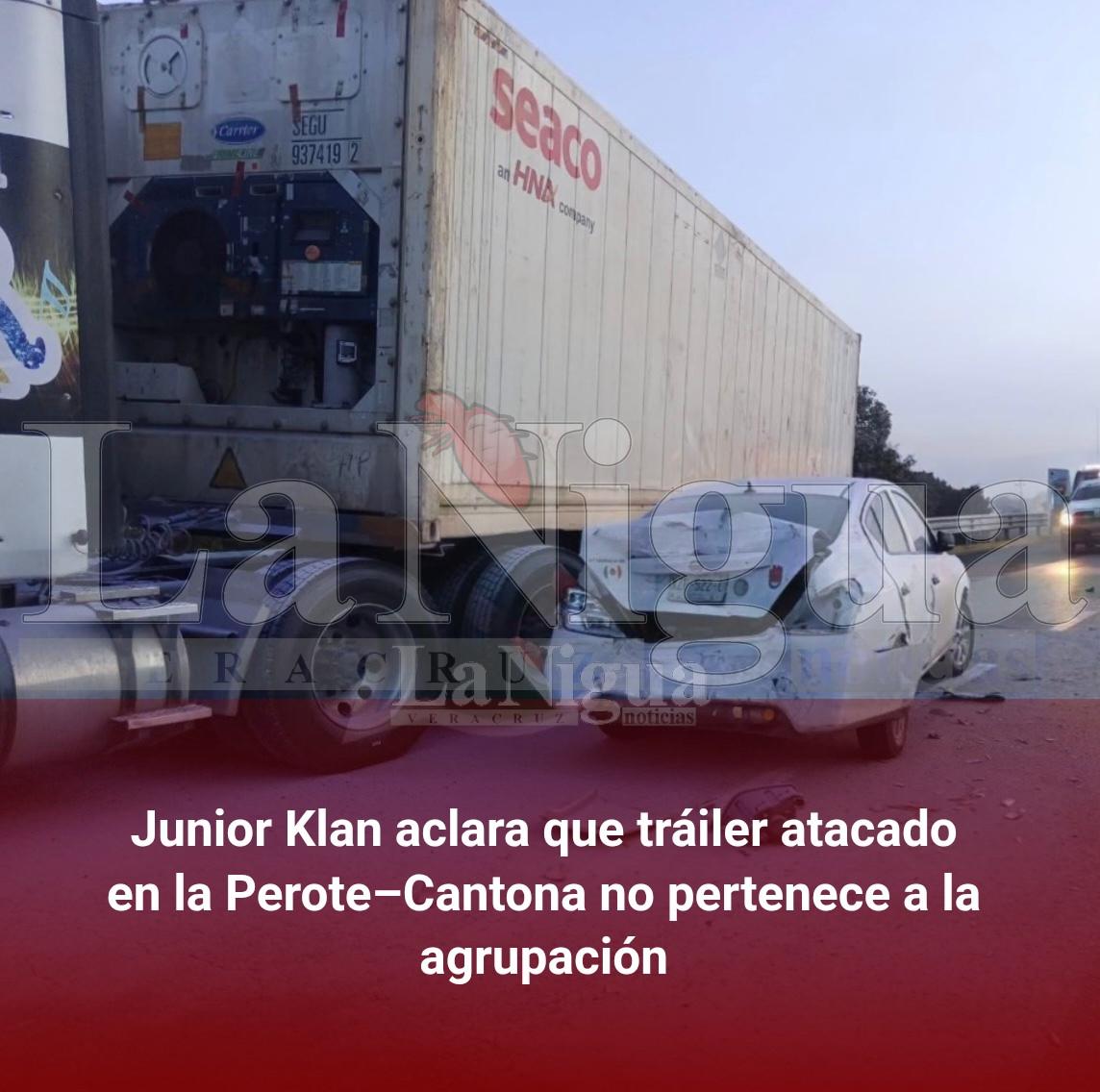 Tras el violento ataque registrado la madrugada de este viernes en la autopista Perote–Cantona, donde un tráiler con logotipos de Junior Klan fue baleado durante un intento de asalto, la agrupación musical desmintió cualquier relación con la unidad y aclaró que no forma parte de su equipo ni de su logística actual.