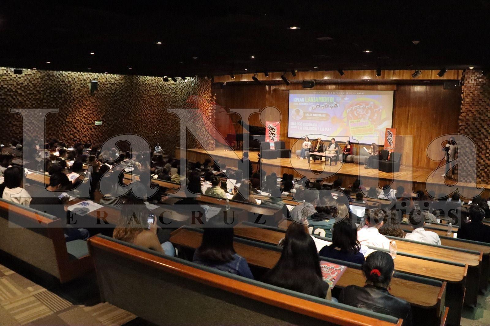 Ciudad de México.— Con un llamado a construir la paz desde abajo y desde las juventudes, se llevó a cabo la presentación del número 20 del periódico ¡Goooya!, el periódico de lxs estudiantxs de la UNAM, en el Centro Cultural Universitario Tlatelolco (CCUT–UNAM), evento que registró lleno total con la asistencia de casi 400 personas, entre estudiantes de bachillerato y licenciatura, colaboradorxs del medio e integrantes de la comunidad universitaria.