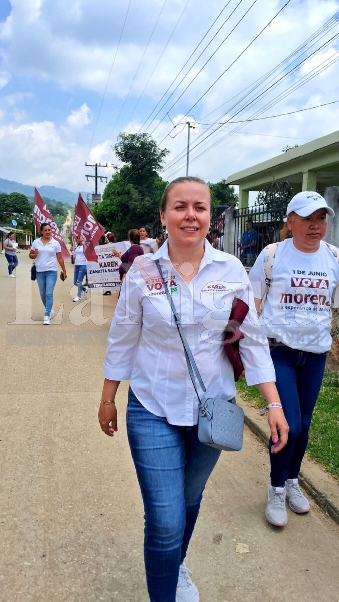 Tepatlaxco, Veracruz, 29 de abril de 2025.-Con entusiasmo y un fuerte compromiso de cercanía con la ciudadanía, Karen Zanatta Sarmiento, candidata a la presidencia municipal de Tepatlaxco por la Coalición Morena-Verde, dio inicio oficial a su campaña en el municipio con un recorrido en la localidad de San José Tenejapa.