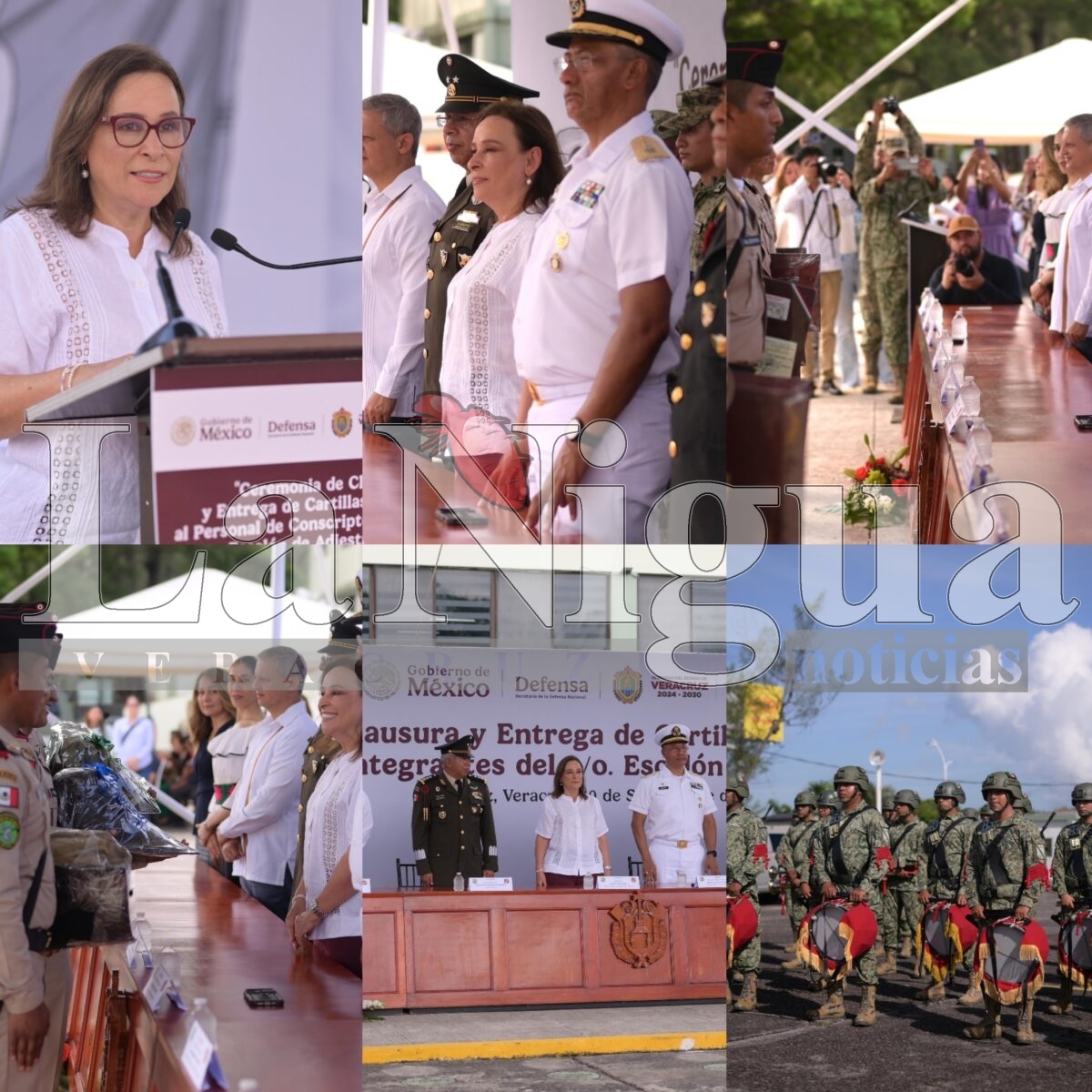 Boca del Río, Ver., viernes 19 de septiembre de 2025.- La gobernadora Rocío Nahle García y el comandante de la 26ª Zona Militar, Miguel Ángel Rodríguez Gutiérrez, encabezaron la ceremonia de clausura y entrega de 108 cartillas liberadas al personal del Segundo Escalón de Adiestramiento 2025 de la Sexta Compañía del Servicio Militar Nacional, reconociendo el esfuerzo y disciplina de los jóvenes.