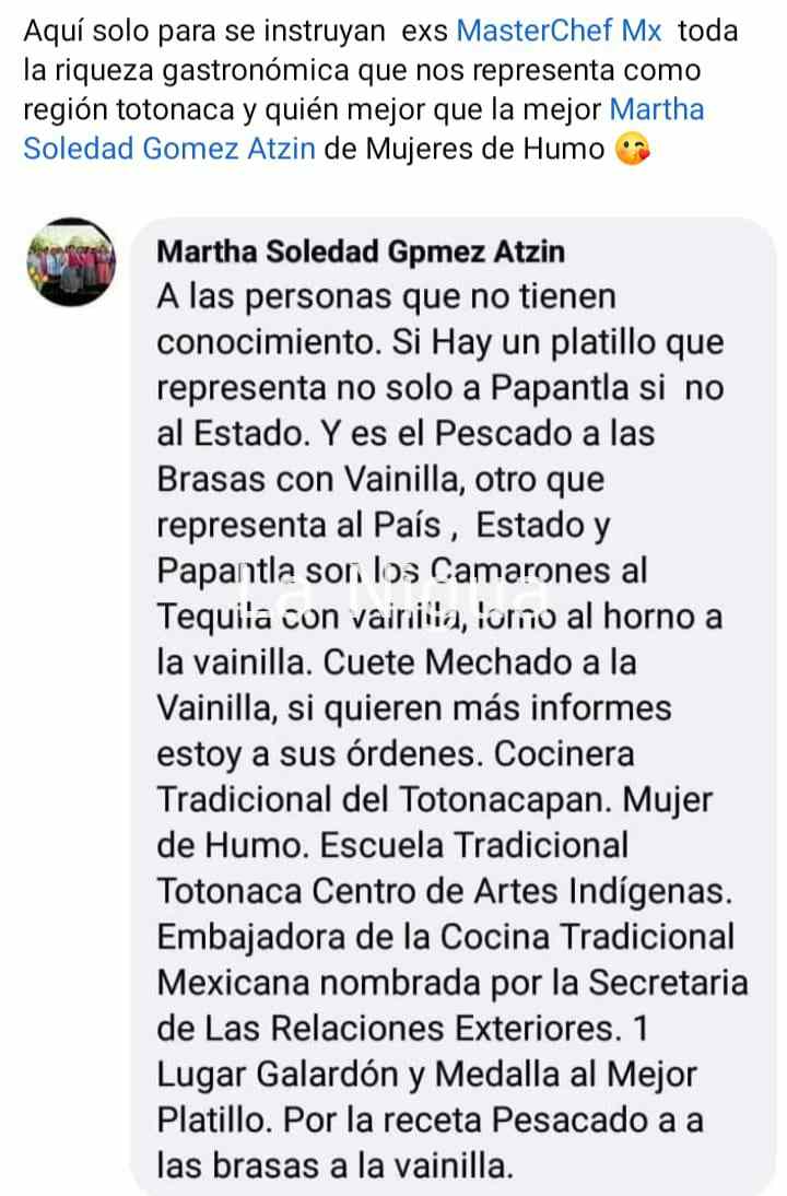 Donde en otros comentarios, que igualmente fueron posteados, lamentaron los usuarios de las redes sociales; la falta de conocimiento de los chefs que intentaron descubrir tanto el agua tibia como el hilo negro de la cocina tradicional del Totonacapan.