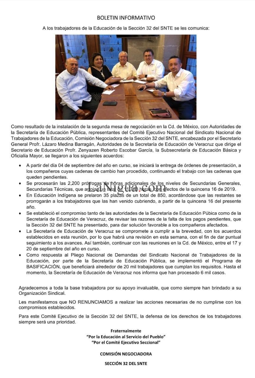 El Sindicato sección 32 lanzó la madrugada de hoy un comunicado ordenando volver a clases al haberse resuelto el asunto laboral de adeudos a maestros en todo el estado.