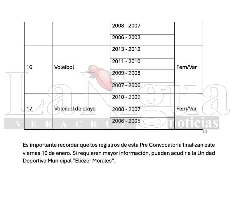 La Coordinación Municipal del Deporte (Comude) de Fortín lanzó la Pre Convocatoria Multidisciplinaria para todos aquellos atletas fortinenses que deseen inscribirse y participar para representar a su ciudad en las próximas etapas eliminatorias, teniendo como fecha límite de registro hasta este viernes 16 de enero.