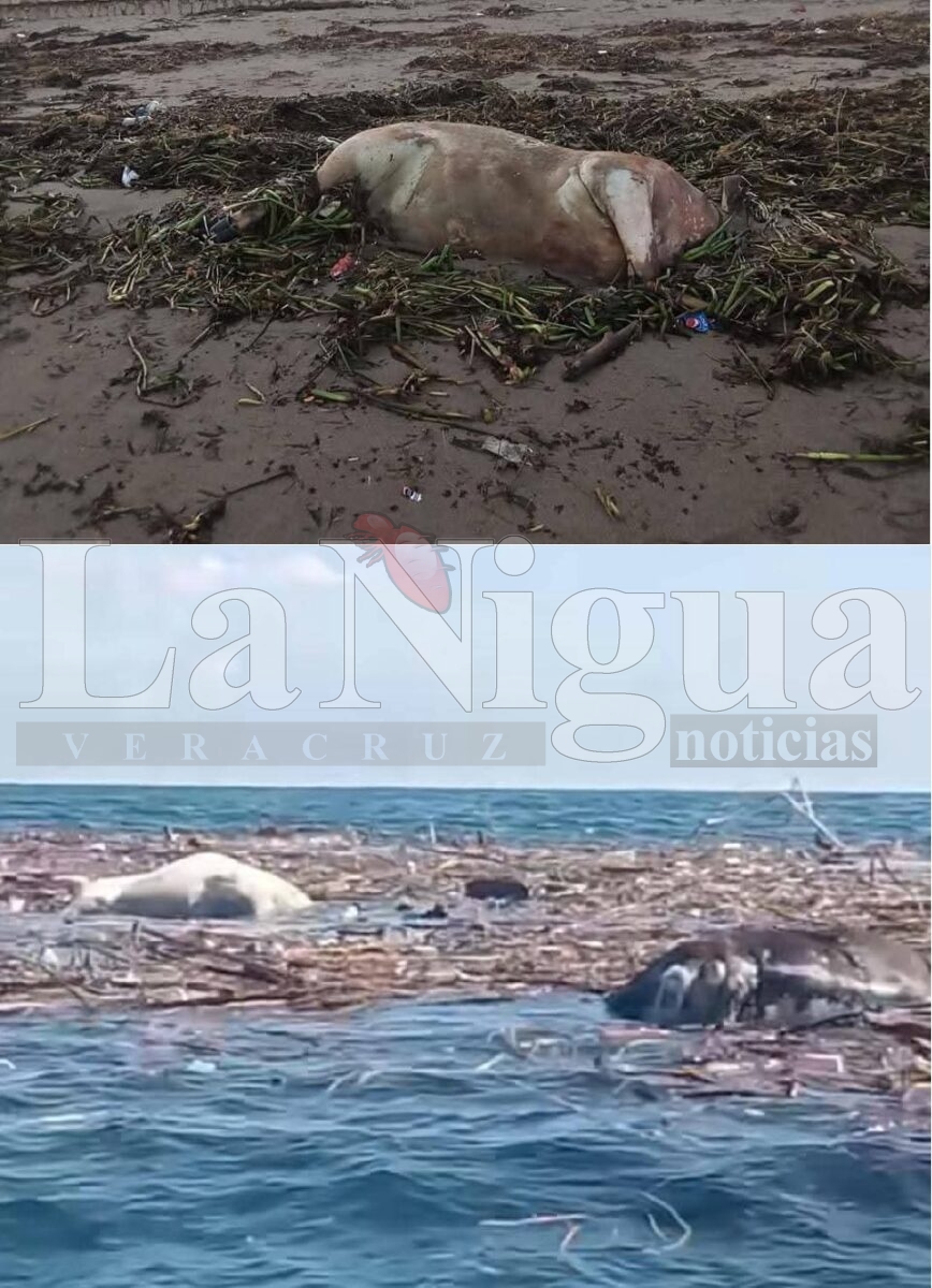 Coatzacoalcos, Ver.– Las fuertes corrientes marinas no solo trajeron hasta la orilla el restaurante “El Atracadero”, sino también cerca de 20 animales muertos, entre ellos vacas y caballos, que aparecieron varados sobre la franja costera a la altura de las dunas.
