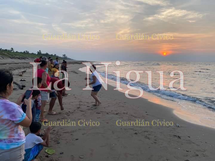 En esta liberación participaron más de 100 voluntarios, entre niñosy familias, en el campamento tortuguero de Playa Caretta en Agua Dulce.